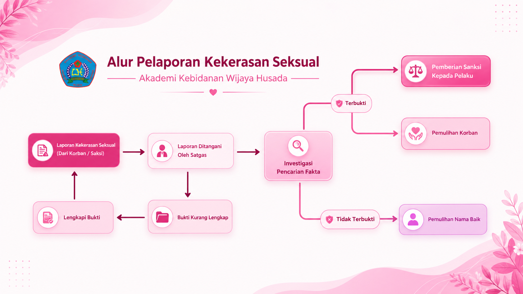 Berdasarkan Peraturan Menteri Pendidikan, Kebudayaan, Ristek, dan Teknologi Nomor 30 Tahun 2021 Tentang Pencegahan dan Penanganan Kekerasan di Perguruan Tinggi (PPKPT), maka Panitia Seleksi (PANSEL), membentuk Satuan Tugas (SATGAS) Pencegahan dan Penanganan Kekerasan di Linkungan Perguruan Tinggi (PPKPT) di Lingkungan Akademi Kebidanan Wijaya Husada